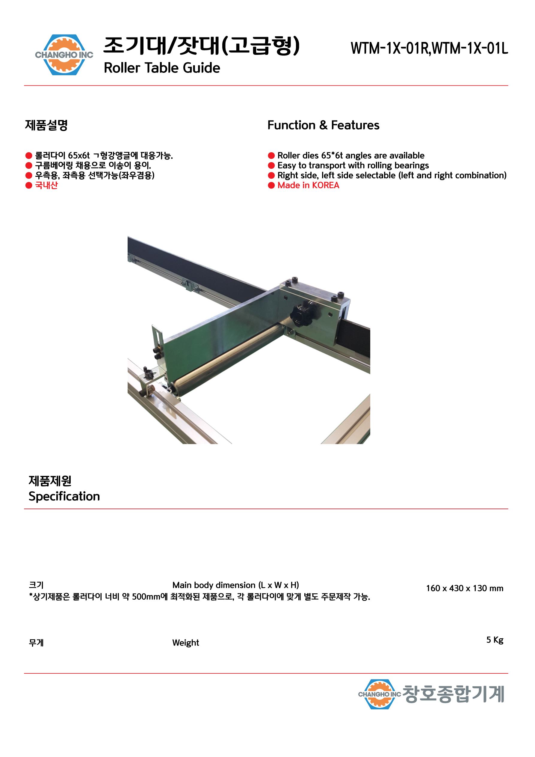 구름베어링 채용으로 이송이 용이.