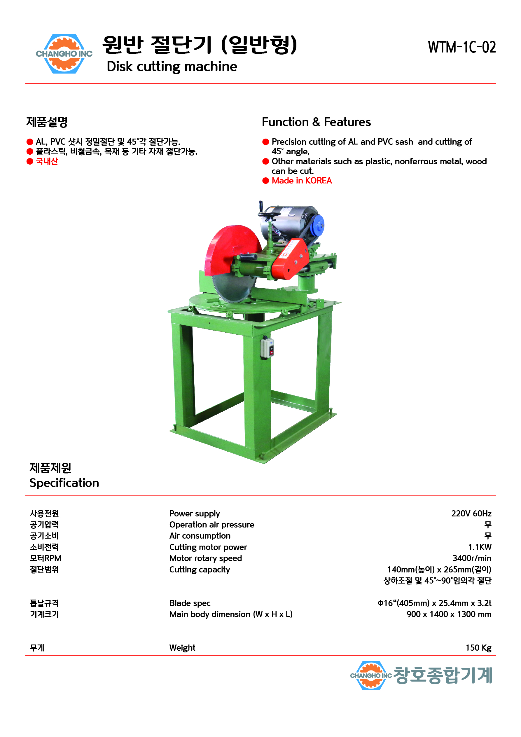 원반절단기 WTM-1C-02 특징