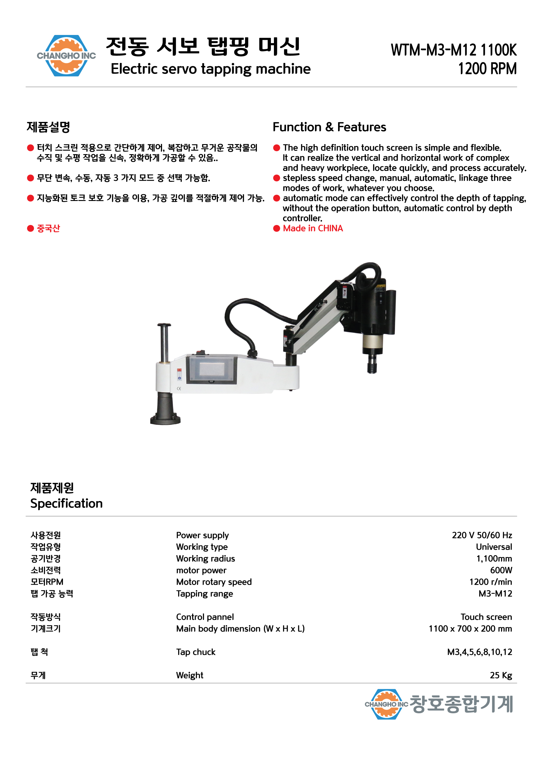 전동서보탭핑기 : 창호종합기계